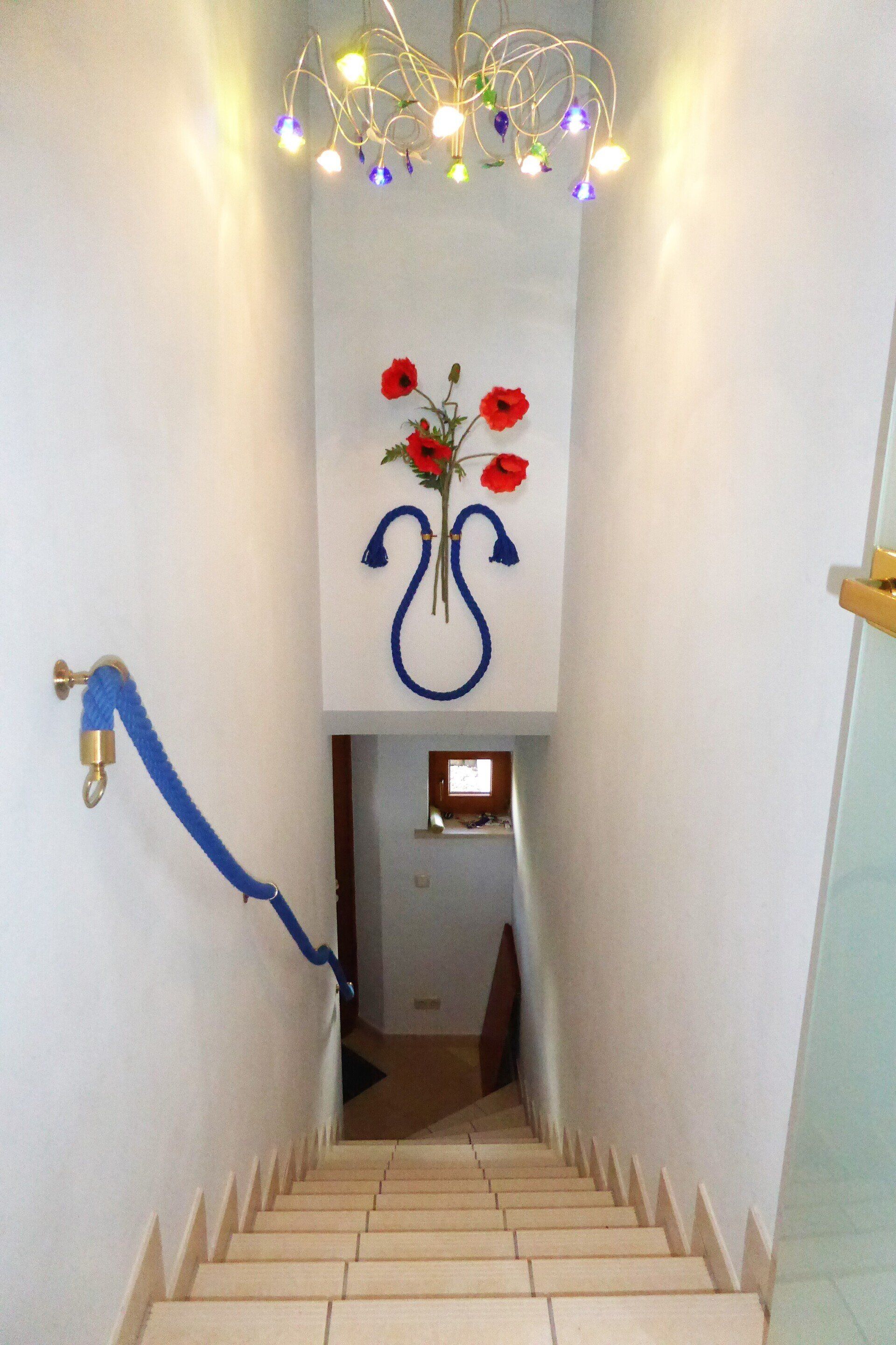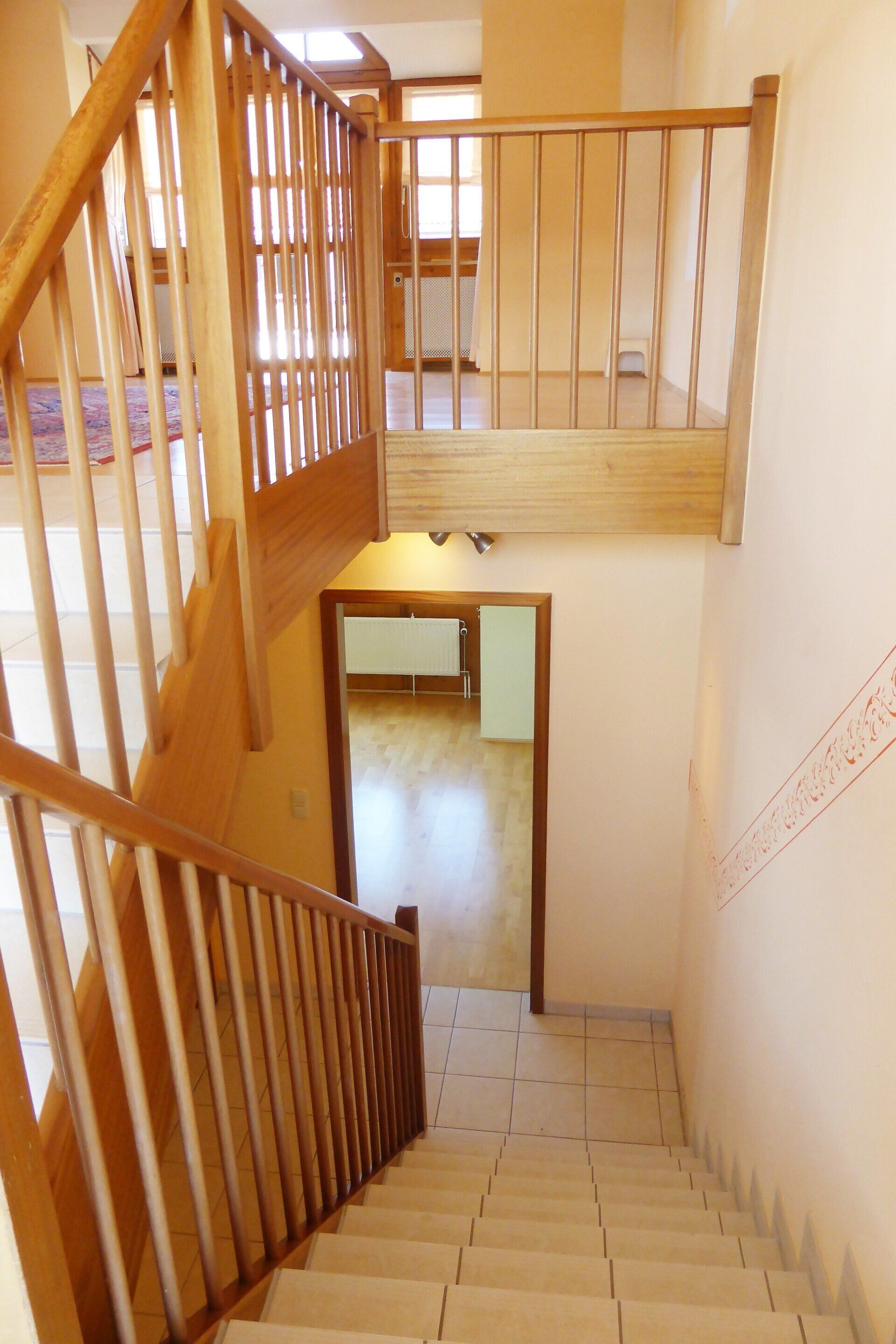 Über eine lange Treppe erreichen Sie die erste Ebene. Dort befinden sich das Kinderzimmer und der Wirtschaftsraum mit eigener Gasheizung, die vor drei Jahren erneuert wurde.