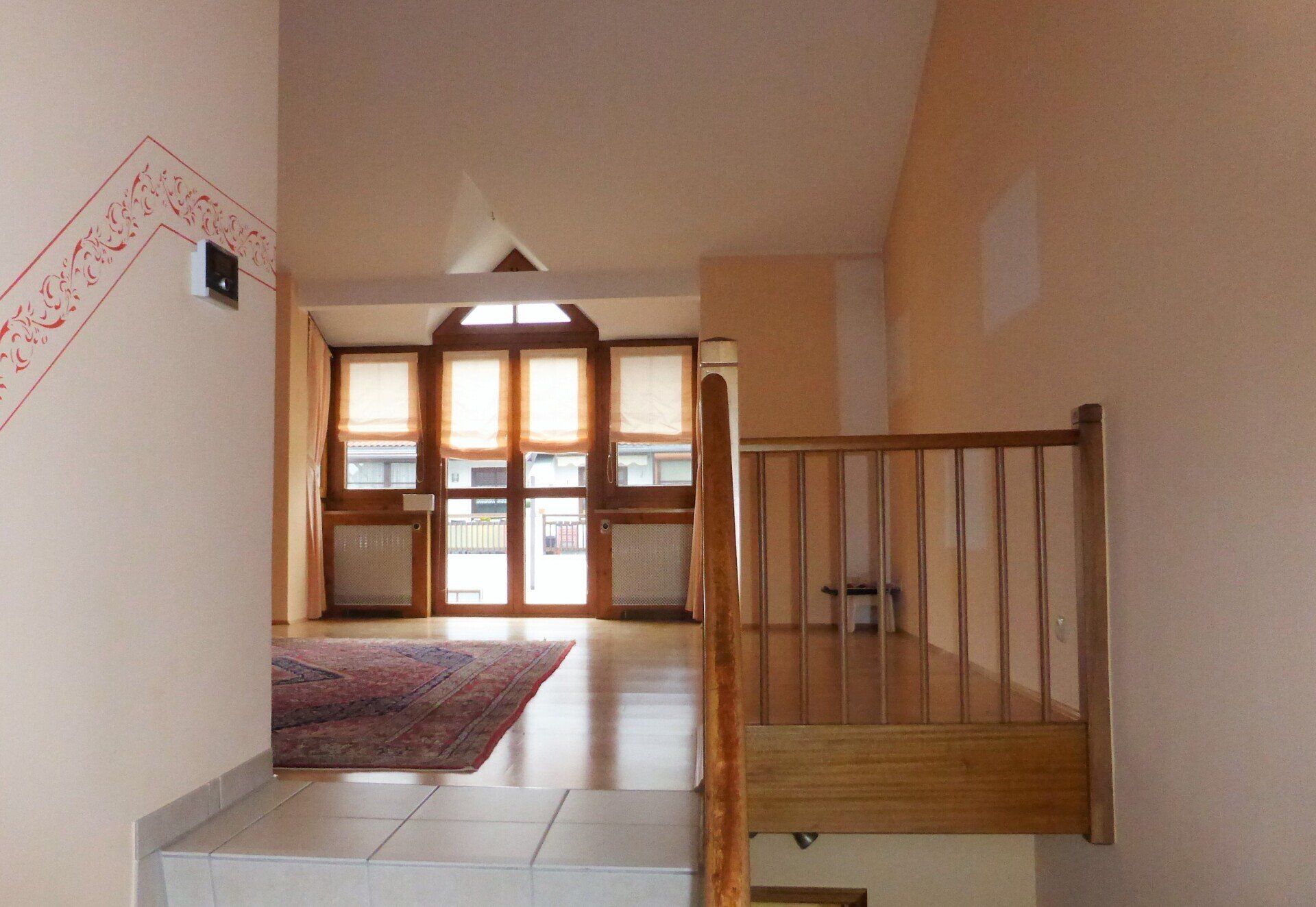 Über eine weitere Treppe gelangen Sie auf die nächste Ebene, auf der sich Küche und Wohnzimmer befinden.
